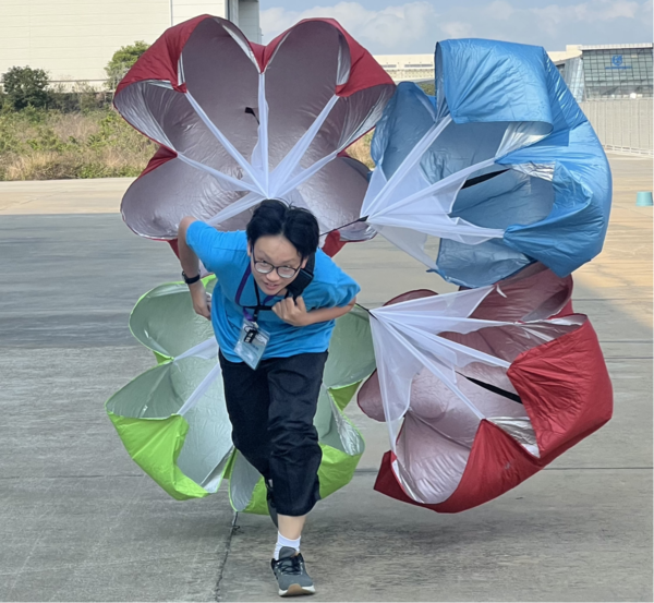 最令人興奮的是無人機體驗環節—— 學生們親自操控遙控器,看著無人機在場地內靈活穿梭,真切感受現代科技的精妙;而趣味空氣炮與阻力傘體驗,則通過互動遊戲讓大家直觀理解流體力學與航空器減速原理,現場笑聲與驚歎聲不斷。