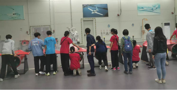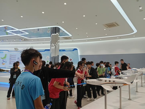 活動首日,學生們抵達了愛飛客航空科普研學基地。在展館內,各式飛行器與航空設備整齊陳列,專業講解員詳細介紹飛行原理與飛機製造技術,讓同學們對航空領域有了系統認識。