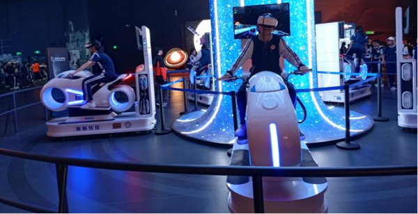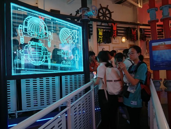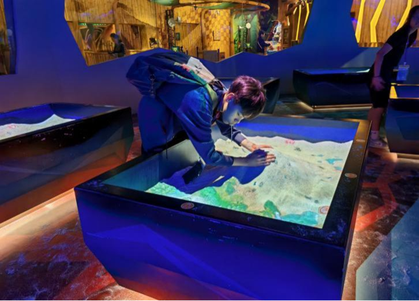 行程最後一天,學生們來到橫琴國家地理探險家中心。在這裏,地理、太空、生物等領域的知識通過互動展覽與實驗項目變得生動有趣:戴上VR 設備「潛入」深海探尋未知生物,通過 AR 技術「穿越」到恐龍時代…… 先進科技讓抽象知識變得可觸可感,激發了大家探索未知的熱情。