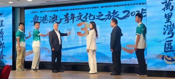 致辭環節結束後,在蘇潁瑜的主持下,施倩瑜、白登亮、陳旭偉攜手粵港澳三地青年代表上台,共同參與簡單而隆重的啟動儀式。隨着倒數聲落,粵港澳三地文化交融的影像長卷驟然綻放。